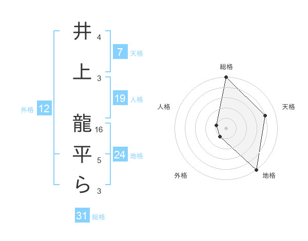 井上 龍平らさんの総格は31画の5点!