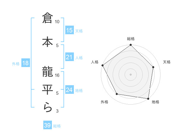 倉本 龍平らさんを姓名の画数から五運を鑑定
