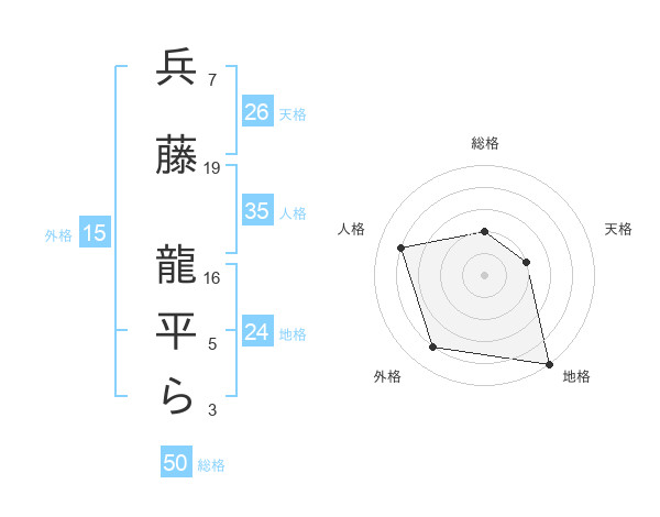 兵藤 龍平らさんを姓名の画数から五運を鑑定