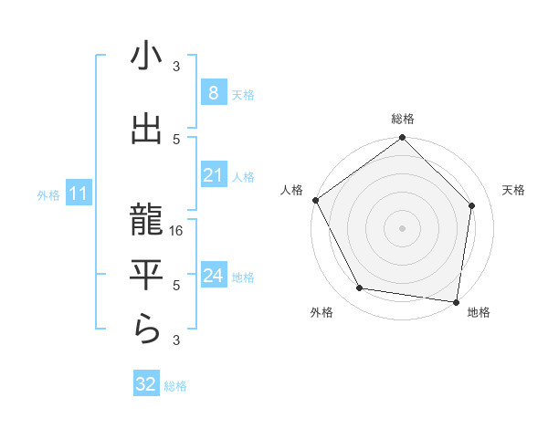 小出 龍平らさんを姓名の画数から五運を鑑定