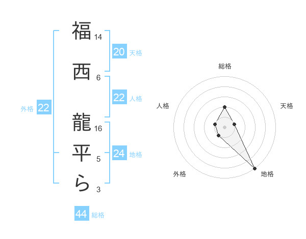 福西 龍平らさんの総格は44画の2点!