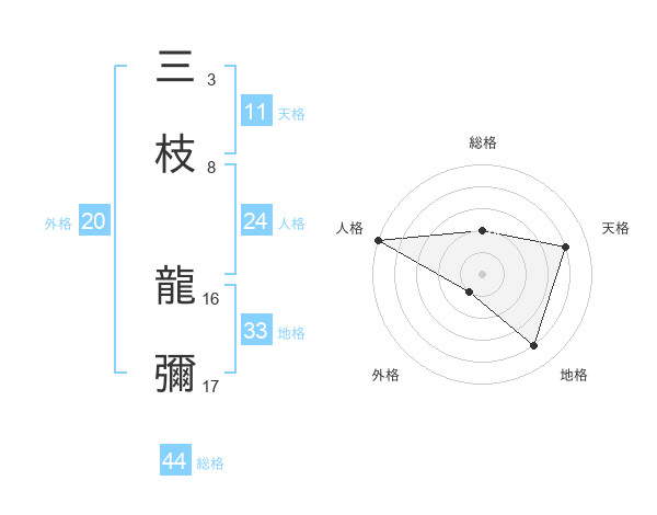 三枝 龍彌さんを姓名の画数から五運を鑑定