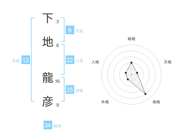 下地 龍彦さんを姓名の画数から五運を鑑定