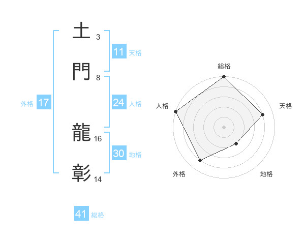 土門 龍彰さんを姓名の画数から五運を鑑定