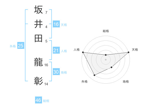 坂井田 龍彰さんを姓名の画数から五運を鑑定