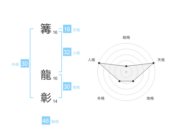 篝 龍彰さんの天格は16画の5点!