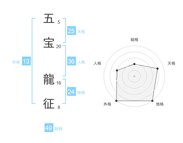 五宝 龍征さんの総格は49画の2点!