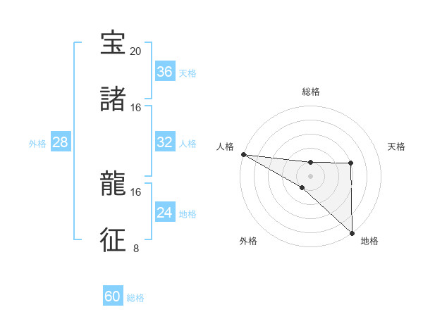 宝諸 龍征さんの総格は60画の1点!