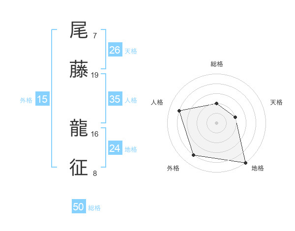 尾藤 龍征さんの総格は50画の2点!