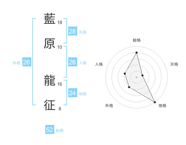 藍原 龍征さんの総格は52画の4点!