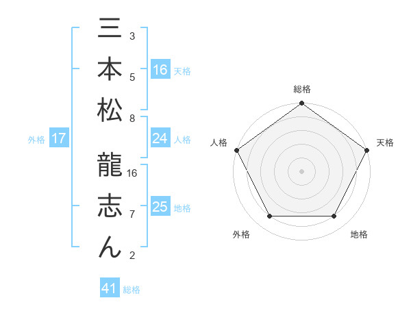 三本松 龍志んさんの総格は41画の5点!
