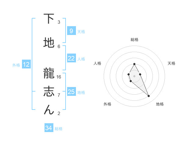 下地 龍志んさんを姓名の画数から五運を鑑定