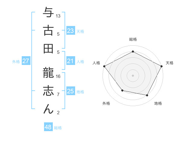 与古田 龍志んさんを姓名の画数から五運を鑑定