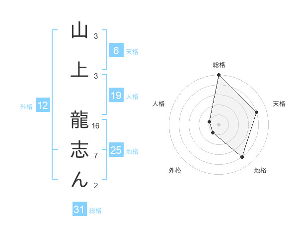 山上 龍志んさんを姓名の画数から五運を鑑定