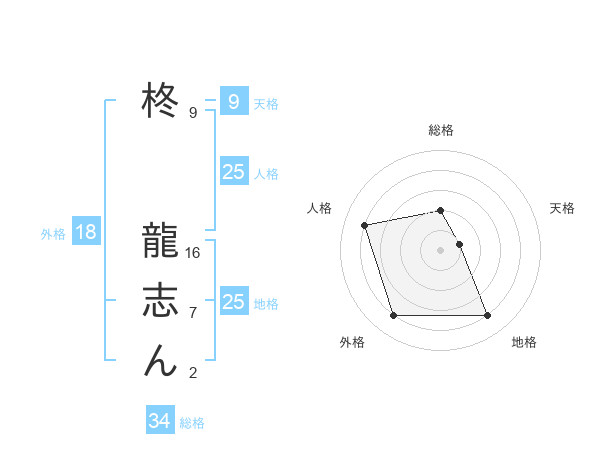 柊 龍志んさんの総格は34画の2点!