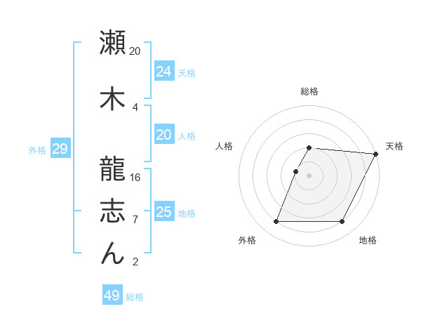 瀬木 龍志んさんを姓名の画数から五運を鑑定