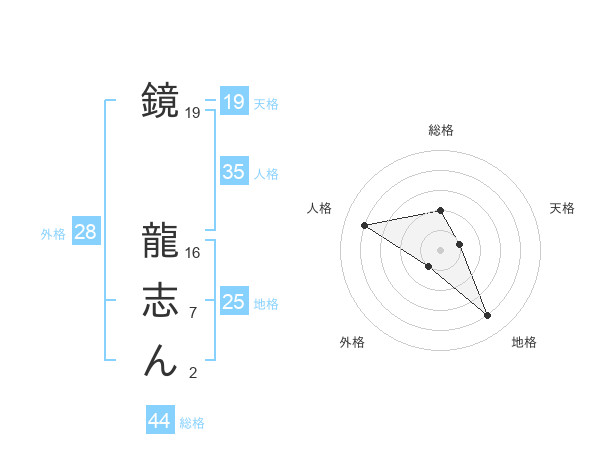 鏡 龍志んさんを姓名の画数から五運を鑑定