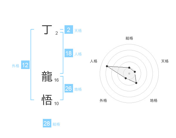 丁 龍悟さんを姓名の画数から五運を鑑定