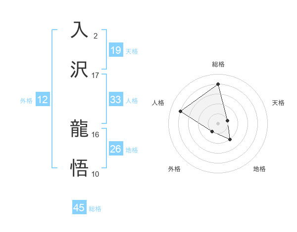 入沢 龍悟さんの総格は45画の4点!