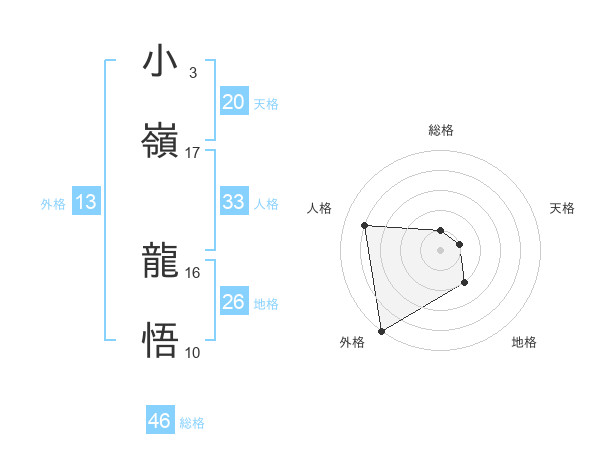 小嶺 龍悟さんの外格は13画の5点!