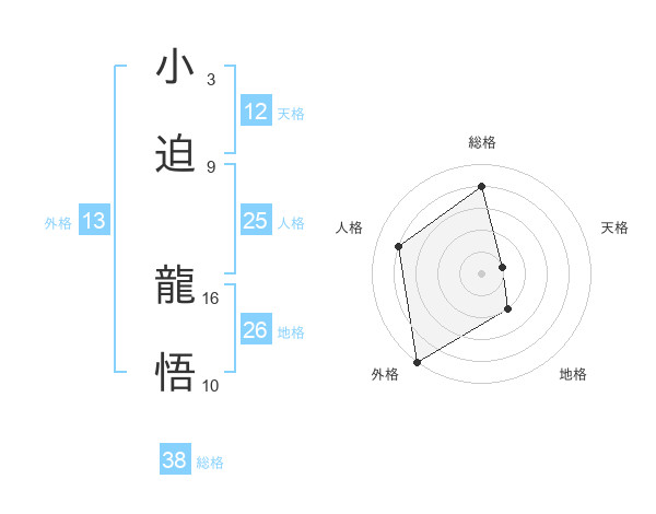 小迫 龍悟さんを姓名の画数から五運を鑑定