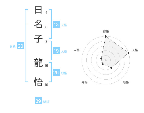 日名子 龍悟さんを姓名の画数から五運を鑑定