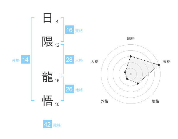 日隈 龍悟さんの天格は16画の5点!