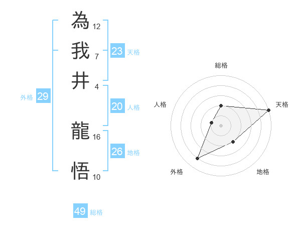 為我井 龍悟さんを姓名の画数から五運を鑑定
