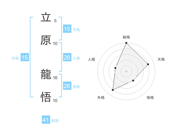 立原 龍悟さんの総格は41画の5点!