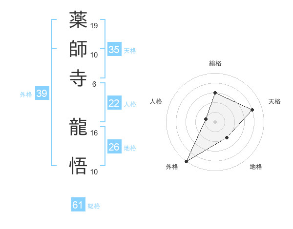薬師寺 龍悟さんの外格は39画の5点!
