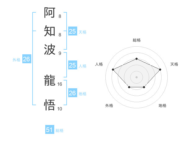 阿知波 龍悟さんを姓名の画数から五運を鑑定