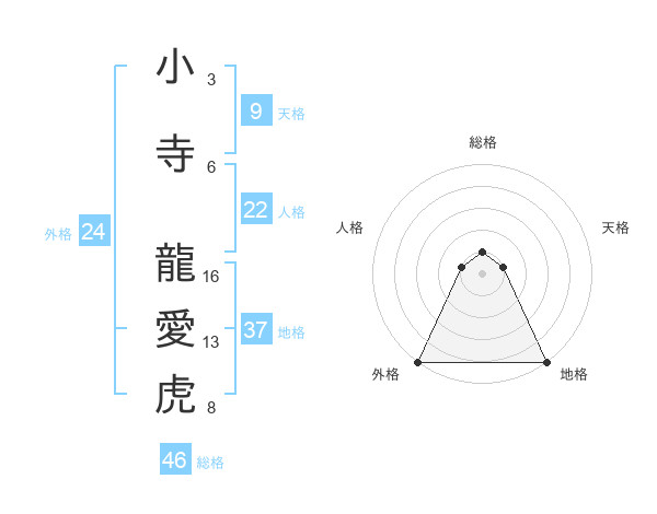小寺 龍愛虎さんを姓名の画数から五運を鑑定