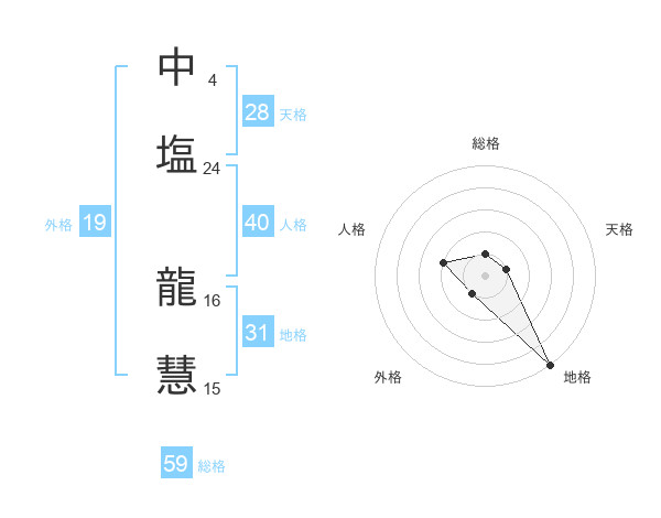 中塩 龍慧さんの地格は31画の5点!