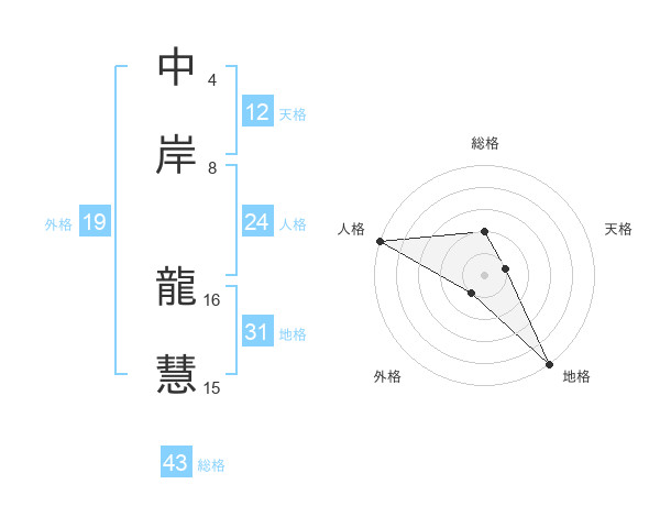 中岸 龍慧さんを姓名の画数から五運を鑑定