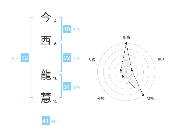 今西 龍慧さんの総格は41画の5点!