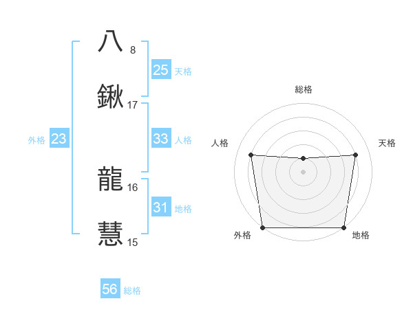 八鍬 龍慧さんを姓名の画数から五運を鑑定