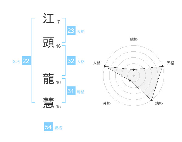 江頭 龍慧さんを姓名の画数から五運を鑑定