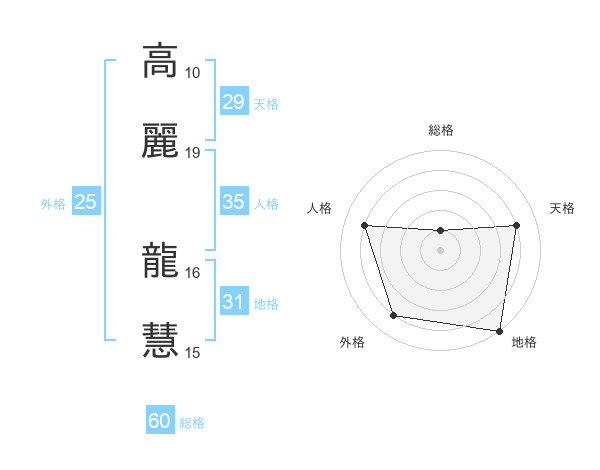 高麗 龍慧さんの総格は60画の1点!