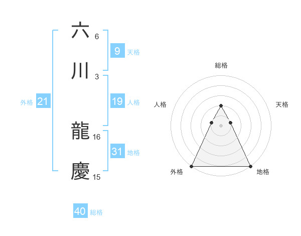 六川 龍慶さんを姓名の画数から五運を鑑定