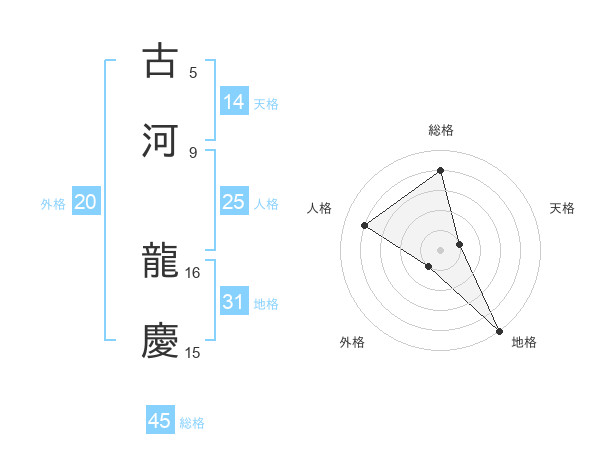 古河 龍慶さんを姓名の画数から五運を鑑定