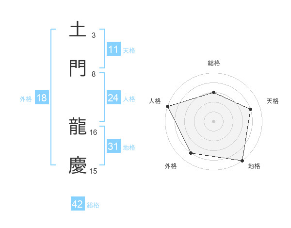 土門 龍慶さんの総格は42画の3点!