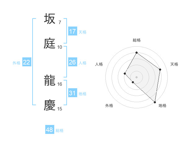 坂庭 龍慶さんの総格は48画の4点!