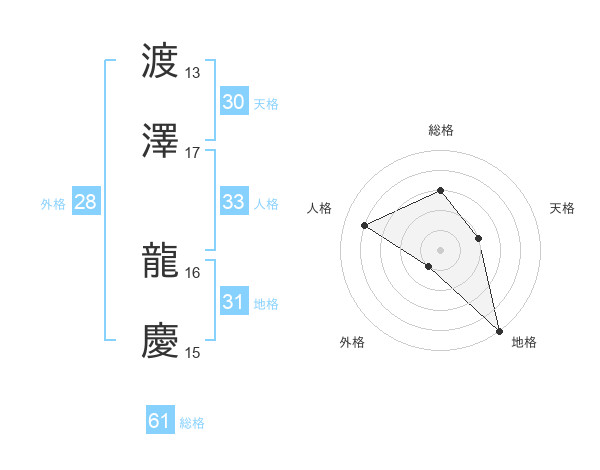 渡澤 龍慶さんを姓名の画数から五運を鑑定