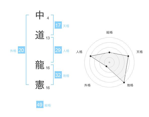 中道 龍憲さんを姓名の画数から五運を鑑定