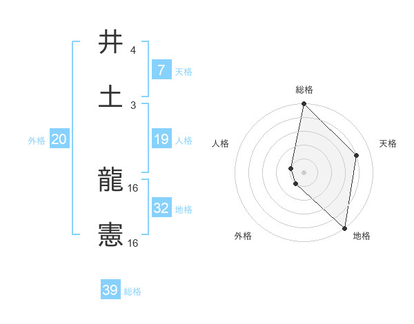 井土 龍憲さんを姓名の画数から五運を鑑定