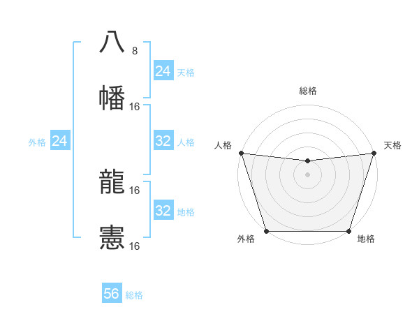 八幡 龍憲さんの総格は56画の1点!