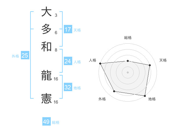 大多和 龍憲さんの地格は32画の5点!