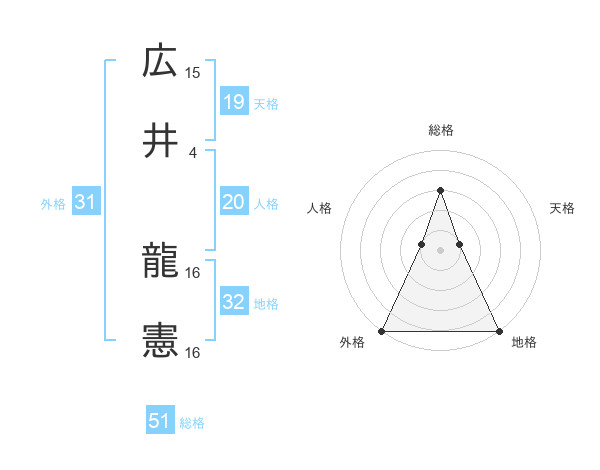 広井 龍憲さんを姓名の画数から五運を鑑定