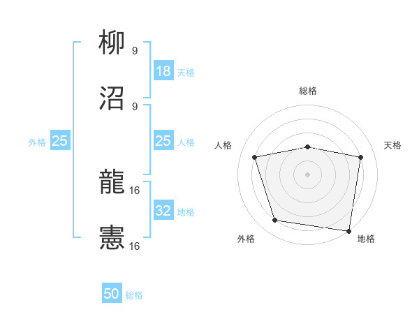 柳沼 龍憲さんを姓名の画数から五運を鑑定