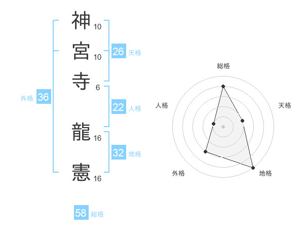 神宮寺 龍憲さんの総格は58画の4点!